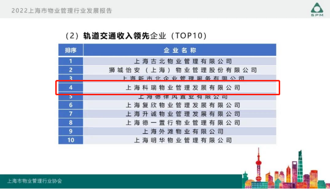9月22日,上海市物業(yè)管理行業(yè)協(xié)會(huì)開展的“2022年度上海市物業(yè)管理行業(yè)發(fā)展報(bào)告發(fā)布會(huì)”在上海舉行。會(huì)上隆重發(fā)布了《2022年上海市物業(yè)管理行業(yè)發(fā)展報(bào)告》、《2022年上海市物業(yè)管理行業(yè)百企千居指數(shù)》,科瑞物業(yè)再次榮獲2022上海市物業(yè)服務(wù)綜合實(shí)力百?gòu)?qiáng)企業(yè)。